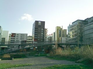 今日は良い天気、青空が広がった。今年の北フランスは曇天続き(先日友人に「雨の絵」が毎日出来るでしょうとからかわれたが、霧雨のような「絵にもならない雨」が大方)で、気象庁によると先月1月のパリの日照時間は僅か24時間だそうで、やっぱりお日様を浴びないと気が滅入ってくる(特に私はB1Fのアトリエの「地下生活者」なので)。だから外に出たのだが、再開発地区の私の界隈はにょきにょき妙な建物がいっぱい建って、最近は大学キャンプ横のこの殺風景な公園に行かないと広い空が仰げなくなってしまった。